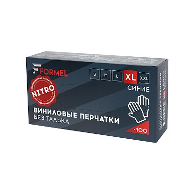 FORMEL Перчатки нитровиниловые, цвет синий, размер XL, 50 пар/упак FM-GL-VYN-B-XL можно купить по выгодной оптовой цене. Забрать товар можно самовывозом со склада-магазина в Дмитрове или выбрать доставку по Сертолову транспортной компанией при оформлении заказа.