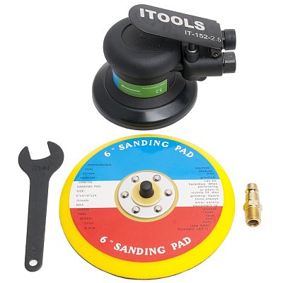 ITOOLS IT-152-2,5 Машинка шлифовальная пневматическая, орбита 2,5мм, подложка 152мм, без отверстий можно купить по выгодной оптовой цене. Забрать товар можно самовывозом со склада-магазина в Дмитрове или выбрать доставку по Сертолову транспортной компанией при оформлении заказа.