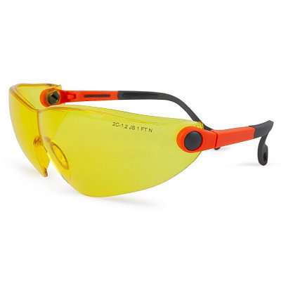 JSG1511-Y Очки защитные открытого типа с регулировкой дужек, янтарные линзы из поликарбоната можно купить оптом и в розницу по выгодной цене. Забрать товар можно самовывозом со склада-магазина "Экоджут" в Санкт-Петербурге или заказать доставку по Сертолову через транспортную компанию.