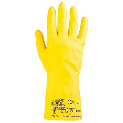 Перчатки химические латексные с хлопковым напылением ЖЕЛТЫЕ JL711(Y), разм.9/L/1 пара/12 пар/144пары можно купить по выгодной оптовой цене. Забрать товар можно самовывозом со склада-магазина в Дмитрове или выбрать доставку по Сертолову транспортной компанией при оформлении заказа.